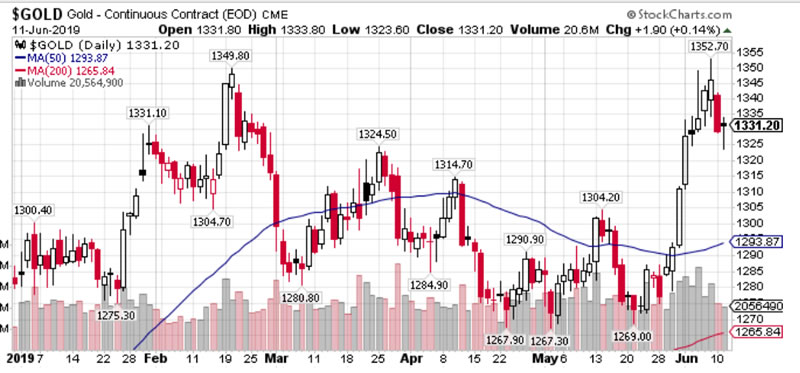(Charts courtesy of stockcharts.com) Silver Price Forecast Conclusion Therefore my forecast conclusion is for the Silver price to trade in a volatile trading range with an upward bias towards a target of $21 later in 2019 which would represent a 42% gain on it's current price of $14.70. Whilst the spike to at least $35 remains as a longer term outlook. Whilst my most recent analysis of Gold (30th of May) concluded in expectations for the Gold price to attempt to break above resistance of between $1350 to $1370 by September 2019, which at the time was trading at $1286. Gold Price Trend Forecast Summer 2019 Gold Price Forecast Conclusion Therefore my forecast conclusion for the Gold price is to trend higher towards a target of $1350-$1370 by late September 2019. This trend can be further broken down to expect a minor correction during July off of a June peak with the rally resuming during August and September.