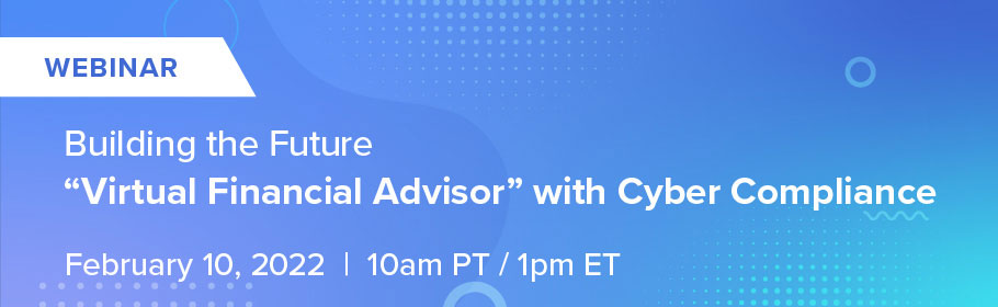Join our webinar Building the Future "Virtual Financial Advisor" with Cyber Compliance February 10 at 10am PT/1pm ET to learn how you can ensure your Virtual Financial Advisor teams are shielded with the latest cyber compliance controls, monitoring and regulatory reporting capabilities. Our industry's leading experts in cyber compliance will share: